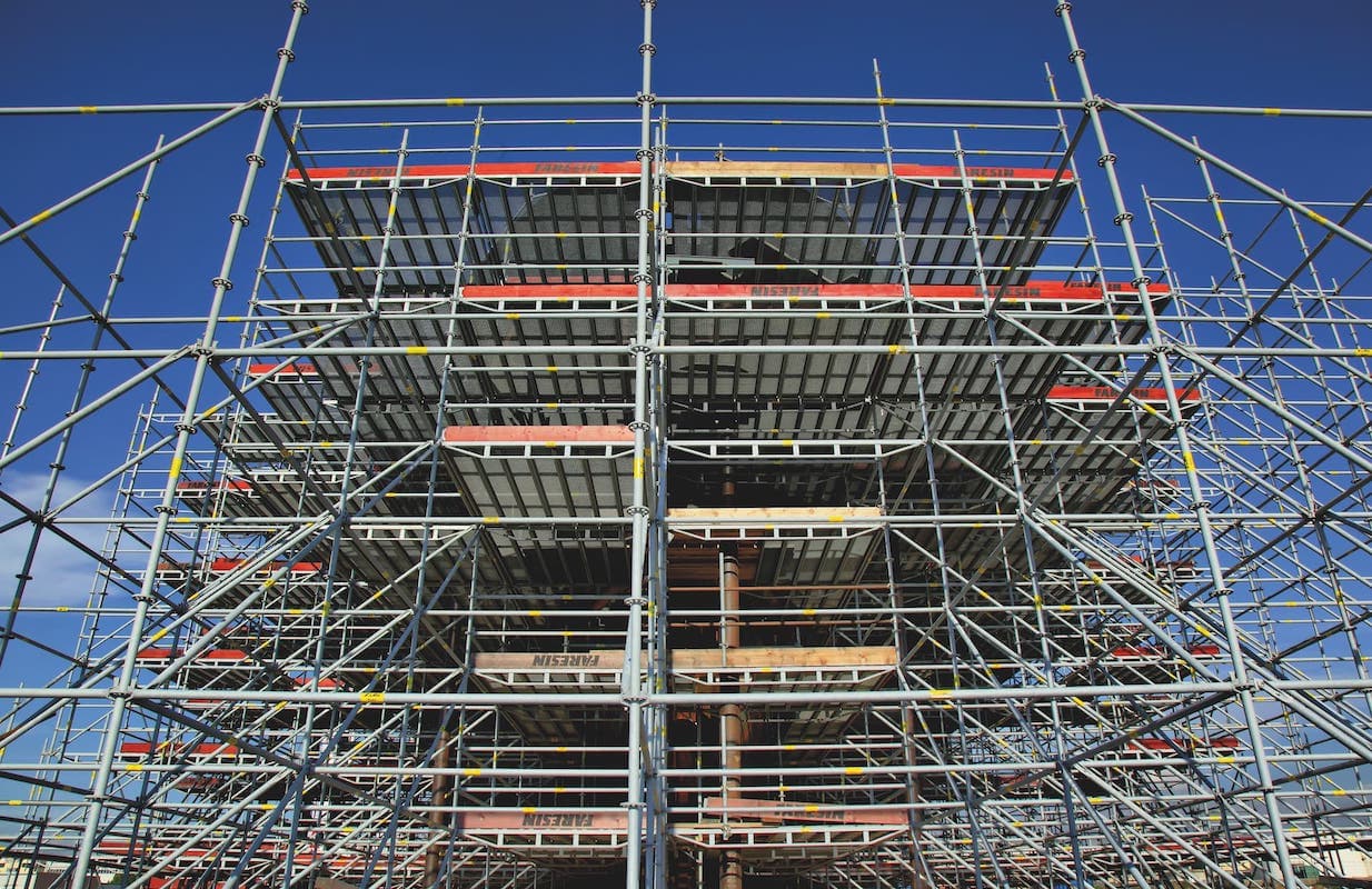 Faresin Formwork has been operating for more than thirty years in the construction of formwork. MODUL is the multidirectional scaffolding system to cover the most complicated and irregular geometry, enabling fast assembly, disassembly with the utmost safety. The various work levels are connected to each other by means of the top with trap door and ladder that allows rapid movement and maximum safety inside the scaffolding.